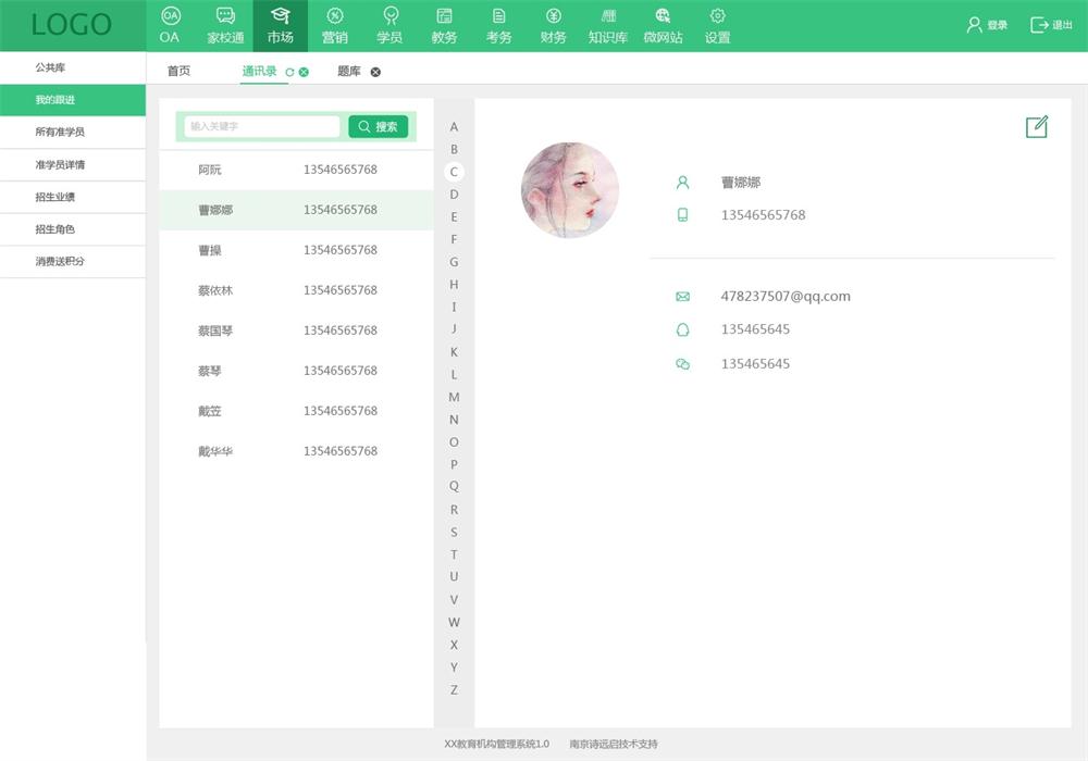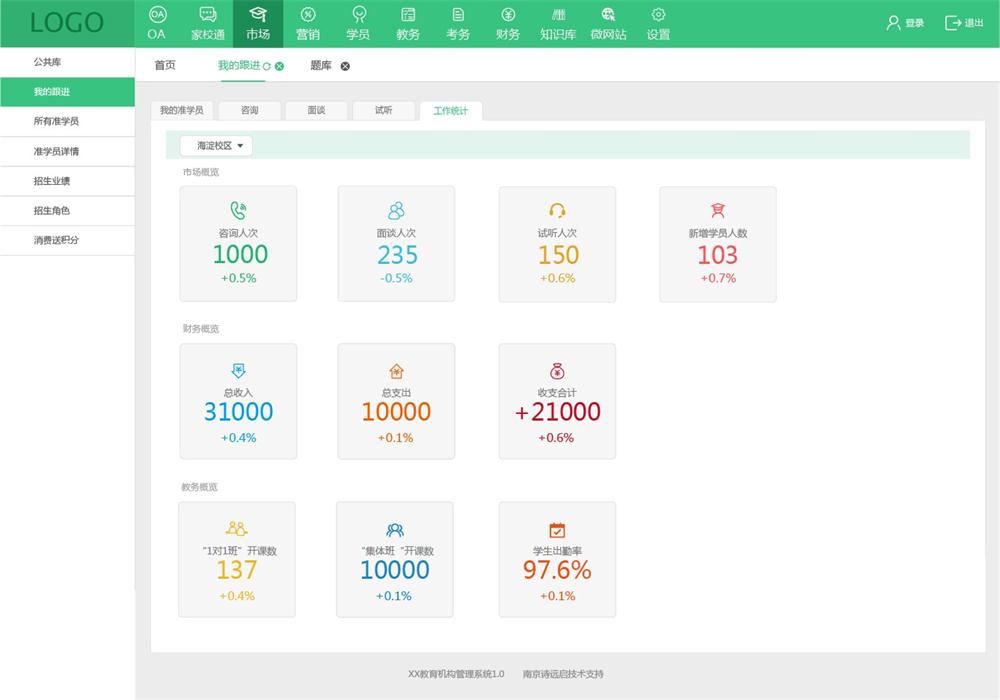 - 咨询、面谈、试听跟进记录
